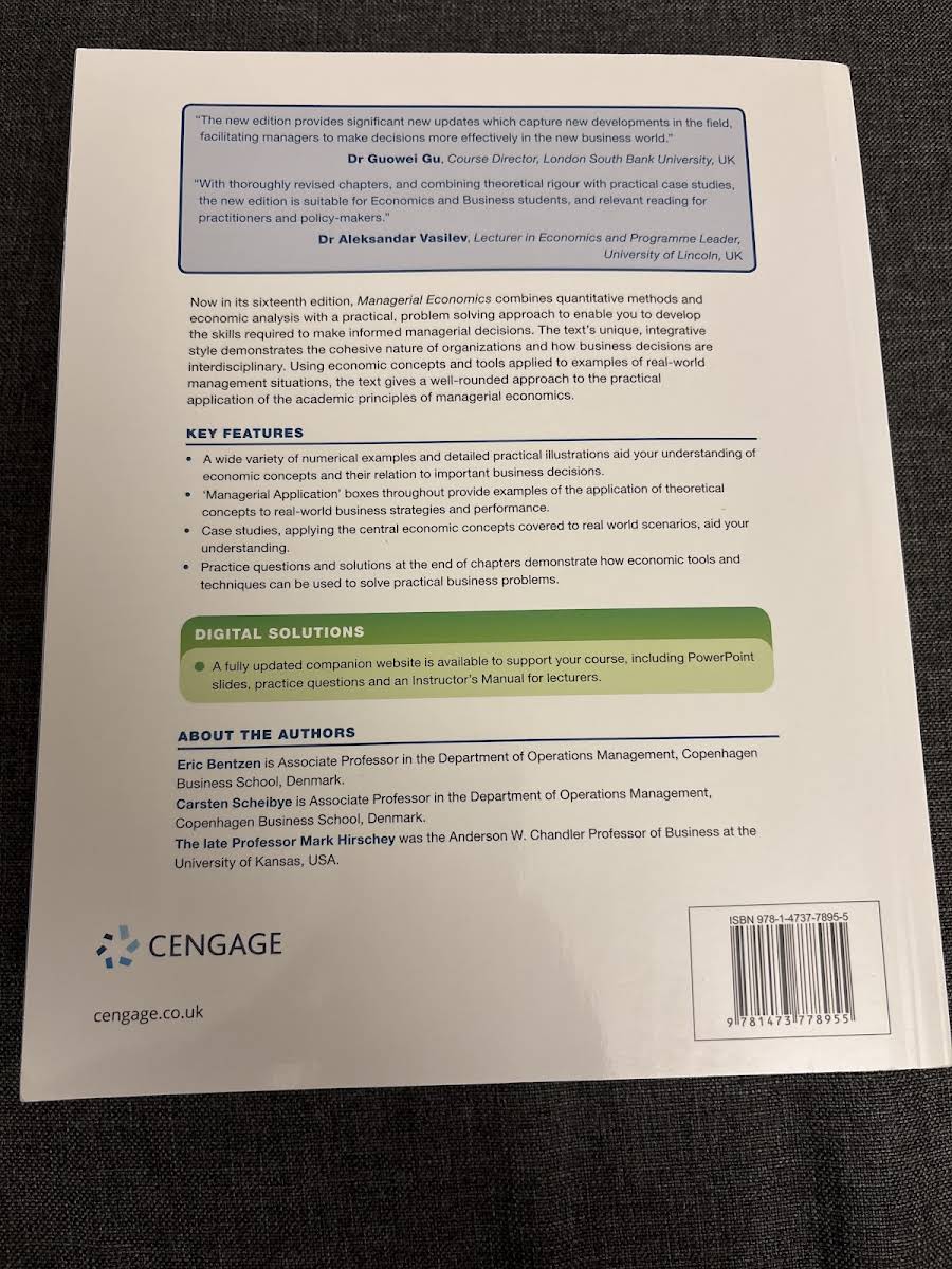 Managerial Economics, authored by Mark Hirschey, Eric Bentzen, and Carsten Scheibye, delivers a robust framework for understanding how economic principles underpin effective managerial decision-making. This comprehensive 2022 edition integrates quantitative methods with economic analysis, offering a practical approach that bridges academic theories and pressing business challenges. Drawing on updated examples and insights from the real world, the text illustrates the interconnected nature of organizational decisions. It emphasizes that business strategies are inherently interdisciplinary, requiring a blend of analytical skills and economic intuition to navigate dynamic market conditions. Spanning 816 pages, Managerial Economics equips readers with essential tools to dissect and interpret complex business scenarios. With its clear, problem-solving orientation, this edition serves as an indispensable resource for students and professionals aiming to apply economic reasoning to managerial challenges.