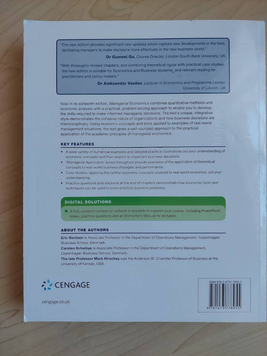 Managerial Economics, authored by Mark Hirschey, Eric Bentzen, and Carsten Scheibye, delivers a robust framework for understanding how economic principles underpin effective managerial decision-making. This comprehensive 2022 edition integrates quantitative methods with economic analysis, offering a practical approach that bridges academic theories and pressing business challenges. Drawing on updated examples and insights from the real world, the text illustrates the interconnected nature of organizational decisions. It emphasizes that business strategies are inherently interdisciplinary, requiring a blend of analytical skills and economic intuition to navigate dynamic market conditions. Spanning 816 pages, Managerial Economics equips readers with essential tools to dissect and interpret complex business scenarios. With its clear, problem-solving orientation, this edition serves as an indispensable resource for students and professionals aiming to apply economic reasoning to managerial challenges.