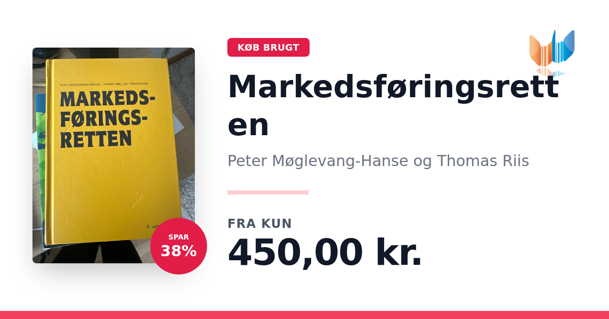Lige nu kan du købe "Markedsføringsretten" af Peter Møglevang-Hanse og Thomas Riis til kun 450,00 kr. Du sparer hele 38% af nyprisen! Bogen du ser her er brugt, og i god stand. Vi har i øjeblikket kun et enkelt eksemplar til salg af "Markedsføringsretten", så slå til mens du kan!