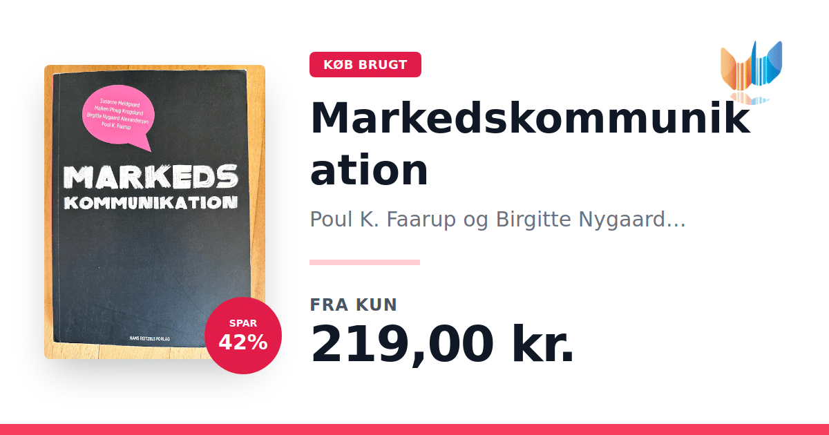 Markedskommunikation er en praksisorienteret lærebog, der giver en operationel introduktion til planlægning og udførelse af markedskommunikation i et kommercielt perspektiv. Bogen er designet til at styrke de studerendes evne til at omsætte teori til praksis, fra strategiudvikling til konkrete kommunikationsindsatser. De første kapitler introducerer de centrale teoretiske fundamenter, herunder kommunikationsteori, kommunikationsmodeller og branding. Herefter uddybes forudsætningerne for effektiv markedskommunikation med fokus på målsætninger (kapitel 3), målgruppeanalyser og indsigter (kapitel 4), samt kreativitet (kapitel 5). Mediestrategi og medievalg behandles efterfølgende i kapitel 6 og 7. Bogens videre kapitler fokuserer på de forskellige faser af eksekvering, herunder intern kommunikation (kapitel 8), awareness (kapitel 9), engagement (kapitel 10), action (kapitel 11) og loyalitet (kapitel 12). Til sidst præsenteres metoder til at måle og evaluere effekten af de samlede indsatser. Med sit praksisnære fokus er bogen en ideel grundlærebog for studiet af markedskommunikation, særligt på Markedsføringsøkonomuddannelsen, men den byder også inspiration til andre videregående uddannelser og professionelle, der arbejder med feltet i det daglige.