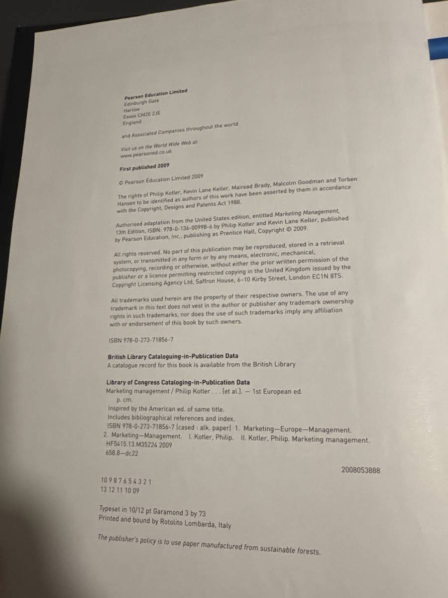 • Marketing Management, Philip Kotler, Kevin Lane Keller, Mairead Brady, Malcolm Goodman, Torben Hansen, 9780273718567