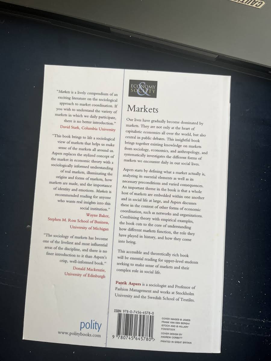 Markets explores the intricate role that markets play in shaping our everyday lives. Patrik Aspers offers a compelling synthesis of insights from sociology, economics, and anthropology, revealing the multiple layers through which market dynamics influence both capitalist economies and public discourse. Beginning with a thorough examination of what constitutes a market, Aspers delves into its essential components, underlying conditions, and the far-reaching consequences of its operation. The book reveals how various forms of markets are interwoven within each other and embedded in broader social and economic structures, including networks and organizations. Through a combination of theoretical discussion and empirical case studies, Markets provides a clear framework for understanding the evolution and functioning of market systems. This thought-provoking work is an indispensable resource for upper-level students and scholars seeking to grasp the complex forces that drive market interactions in contemporary society.