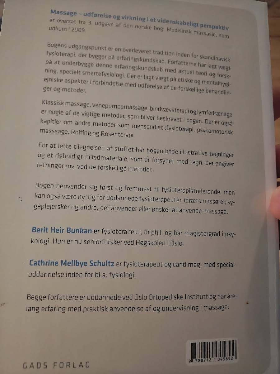 "Massage" udgivet i 3. udgave i 2011 præsenterer en opdateret og dansk tilgang til den langvarige skandinaviske tradition inden for fysioterapi. Bogen bygger på et solidt erfaringsgrundlag, der understøttes af aktuel teori og forskning, herunder smertefysiologi, samt et fokus på etiske og mentalhygiejniske aspekter i behandlingsmetoderne. I denne bog introduceres læseren til en række teknikker såsom klassisk massage, pumpemassage, bindevævsterapi og lymfedrænage. Rigeligt illustreret med instruktive fotografier, demonstrerer værket præcise håndgreb og metoder, der gør det til et uundværligt redskab for både studerende og erfarne fysioterapeuter samt alle, der ønsker at lære mere om massage.