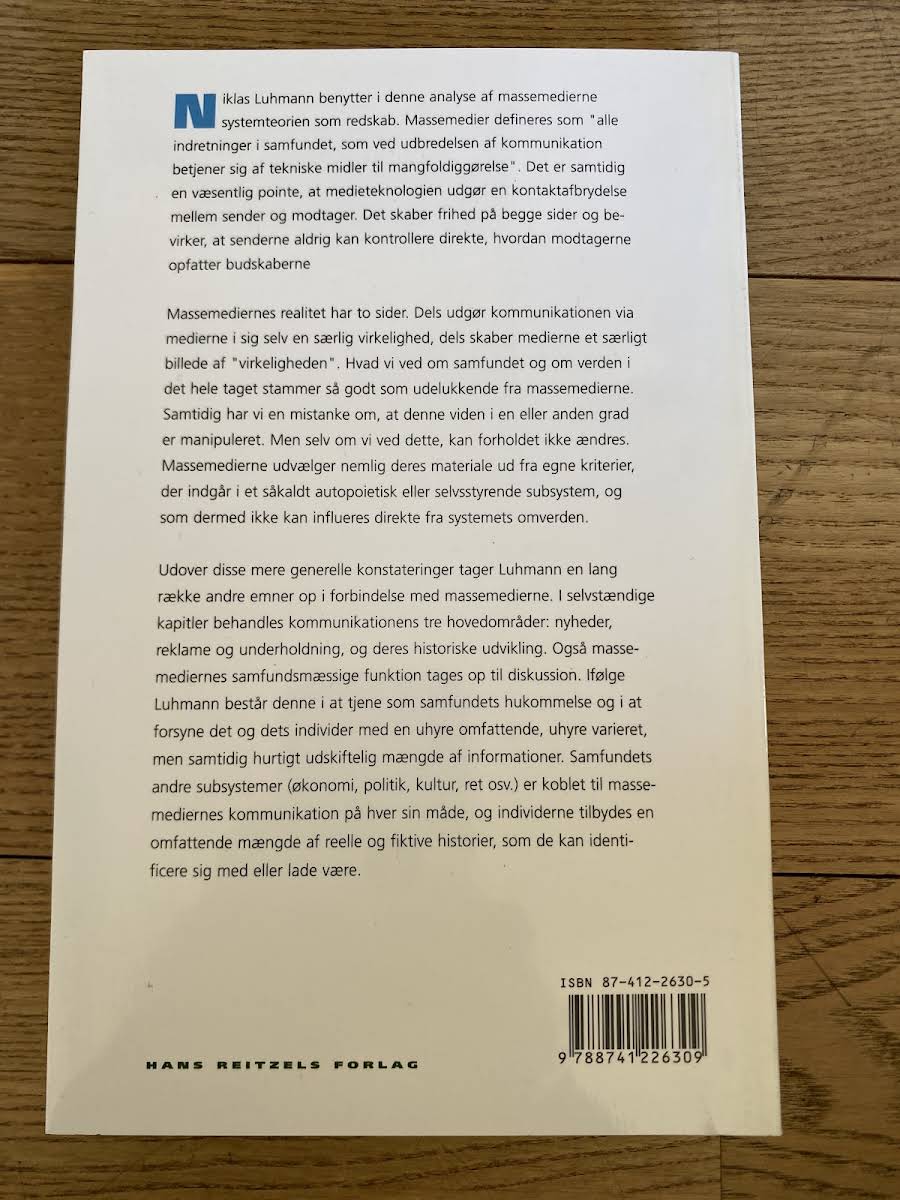 • Massemediernes realitet, Niklas Luhmann, 9788741226309