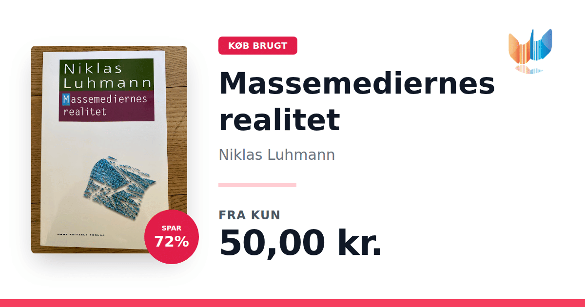 Lige nu kan du købe "Massemediernes realitet" af Niklas Luhmann til kun 50,00 kr. Du sparer hele 72% af nyprisen! Bogen du ser her er brugt, og i perfekt stand. Vi har i øjeblikket kun et enkelt eksemplar til salg af "Massemediernes realitet", så slå til mens du kan!
