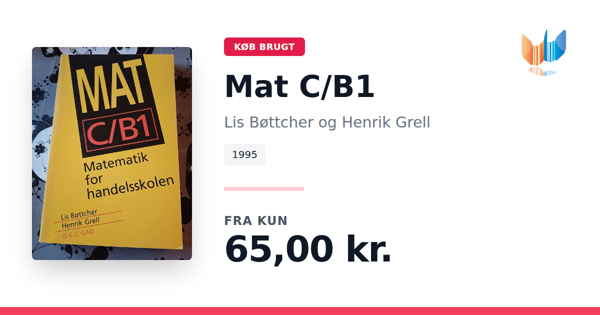 Lige nu kan du købe "Mat C/B1" af Lis Bøttcher og Henrik Grell til kun 65,00 kr. Bogen du ser her er brugt, og i perfekt stand. Vi har i øjeblikket kun et enkelt eksemplar til salg af "Mat C/B1", så slå til mens du kan!
