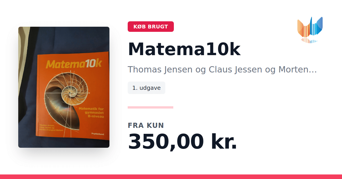 Lige nu kan du købe "Matema10k" af Thomas Jensen og Claus Jessen og Morten Overgård Nielsen til kun 350,00 kr. Bogen du ser her er brugt, og i perfekt stand. Vi har i øjeblikket kun et enkelt eksemplar til salg af "Matema10k", så slå til mens du kan!
