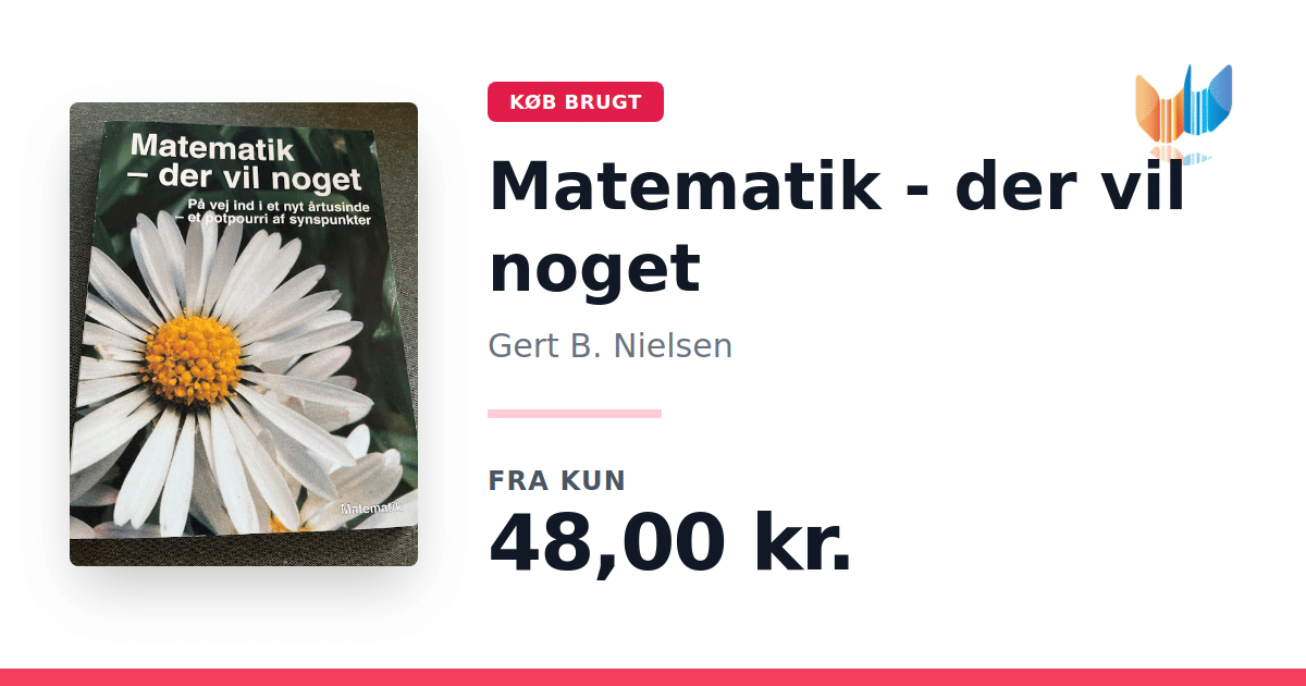 Lige nu kan du købe "Matematik - der vil noget" af Gert B. Nielsen til kun 48,00 kr. Bogen du ser her er brugt, og i perfekt stand. Vi har i øjeblikket kun et enkelt eksemplar til salg af "Matematik - der vil noget", så slå til mens du kan!