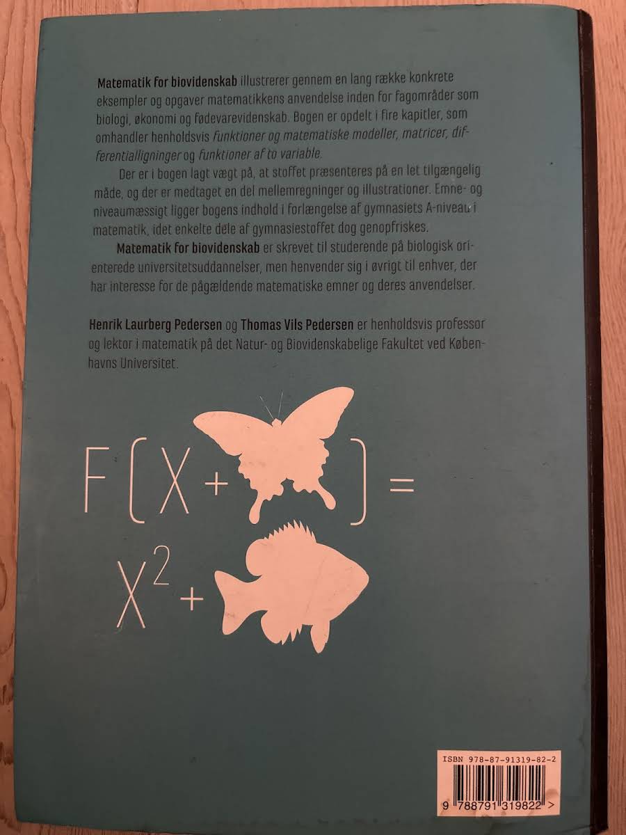 Matematik for biovidenskab præsenterer en bred vifte af konkrete eksempler og opgaver, der tydeliggør matematikkens rolle inden for discipliner som biologi, økonomi og fødevarevidenskab. Bogen henvender sig især til studerende på biologisk orienterede universitetsuddannelser, men den appellerer også til alle med interesse for matematiske metoder og deres praktiske anvendelser. Bogens struktur er inddelt i fire kapitler, som behandler henholdsvis funktioner og matematiske modeller, matricer, differentialligninger samt funktioner af to variable. Der lægges vægt på en let tilgængelig formidling af stoffet med omhyggelige mellemregninger og illustrative eksempler, der genopliver og udbygger gymnasiets A-niveau i matematik.