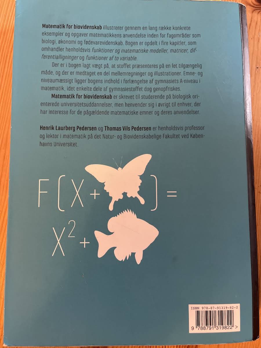 Matematik for biovidenskab præsenterer en bred vifte af konkrete eksempler og opgaver, der tydeliggør matematikkens rolle inden for discipliner som biologi, økonomi og fødevarevidenskab. Bogen henvender sig især til studerende på biologisk orienterede universitetsuddannelser, men den appellerer også til alle med interesse for matematiske metoder og deres praktiske anvendelser. Bogens struktur er inddelt i fire kapitler, som behandler henholdsvis funktioner og matematiske modeller, matricer, differentialligninger samt funktioner af to variable. Der lægges vægt på en let tilgængelig formidling af stoffet med omhyggelige mellemregninger og illustrative eksempler, der genopliver og udbygger gymnasiets A-niveau i matematik.