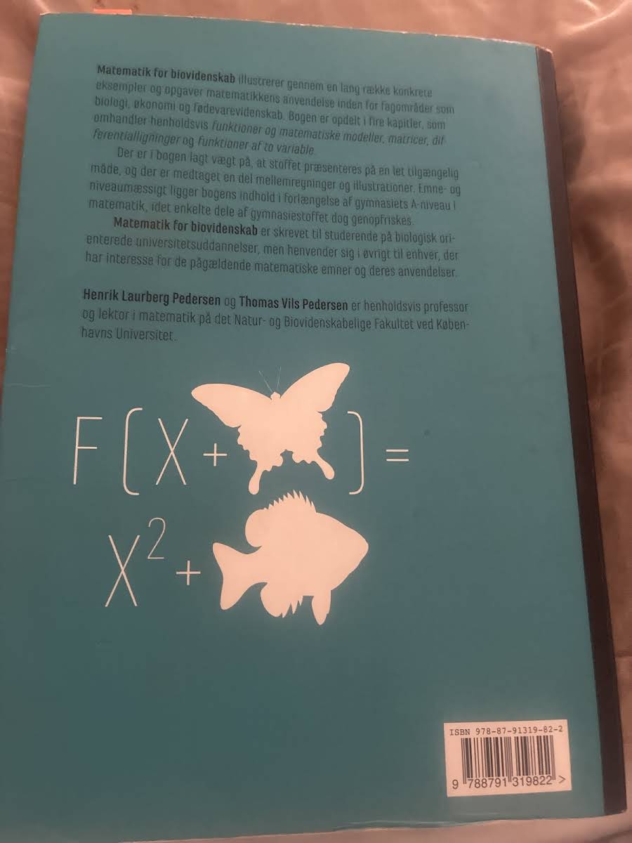 Matematik for biovidenskab præsenterer en bred vifte af konkrete eksempler og opgaver, der tydeliggør matematikkens rolle inden for discipliner som biologi, økonomi og fødevarevidenskab. Bogen henvender sig især til studerende på biologisk orienterede universitetsuddannelser, men den appellerer også til alle med interesse for matematiske metoder og deres praktiske anvendelser. Bogens struktur er inddelt i fire kapitler, som behandler henholdsvis funktioner og matematiske modeller, matricer, differentialligninger samt funktioner af to variable. Der lægges vægt på en let tilgængelig formidling af stoffet med omhyggelige mellemregninger og illustrative eksempler, der genopliver og udbygger gymnasiets A-niveau i matematik.