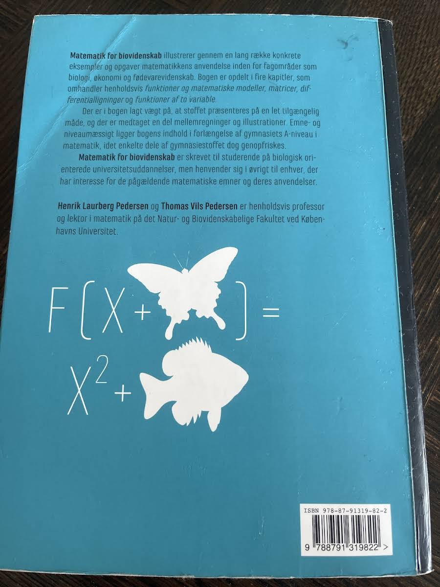 Matematik for biovidenskab præsenterer en bred vifte af konkrete eksempler og opgaver, der tydeliggør matematikkens rolle inden for discipliner som biologi, økonomi og fødevarevidenskab. Bogen henvender sig især til studerende på biologisk orienterede universitetsuddannelser, men den appellerer også til alle med interesse for matematiske metoder og deres praktiske anvendelser. Bogens struktur er inddelt i fire kapitler, som behandler henholdsvis funktioner og matematiske modeller, matricer, differentialligninger samt funktioner af to variable. Der lægges vægt på en let tilgængelig formidling af stoffet med omhyggelige mellemregninger og illustrative eksempler, der genopliver og udbygger gymnasiets A-niveau i matematik.