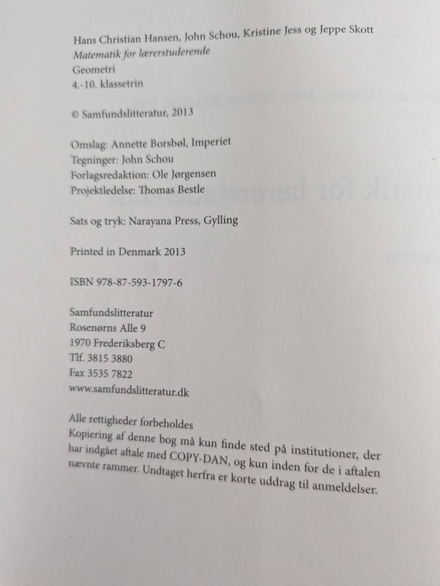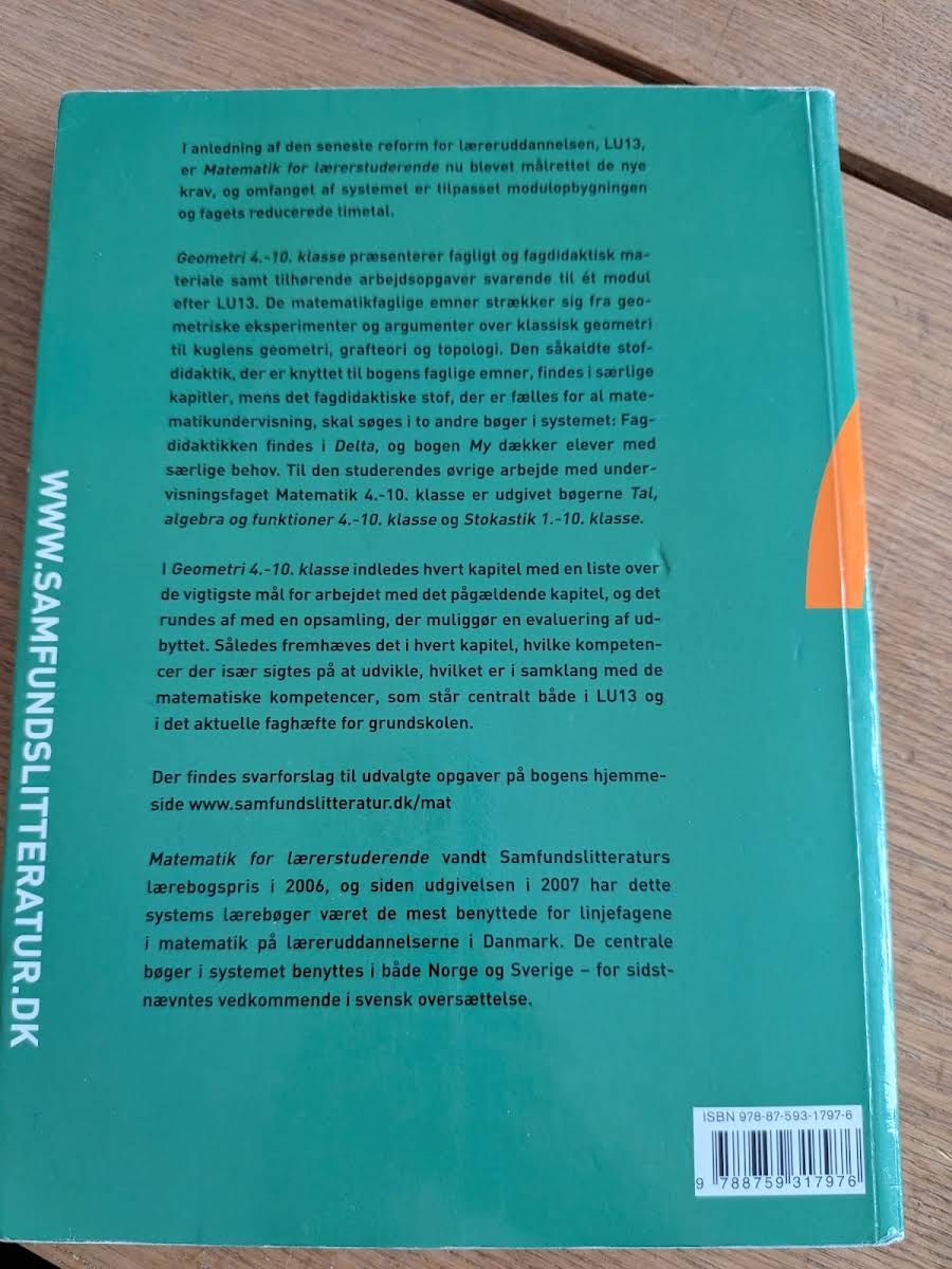 "Matematik for lærerstuderende – Geometri" er udarbejdet i lyset af den seneste reform af læreruddannelsen og imødekommer de nye krav til undervisningen i geometri for 4.–10. klasse. Bogen, udgivet af Samfundslitteratur i 2013, tilbyder lærerstuderende et solidt fagligt fundament kombineret med fagdidaktisk materiale og tilhørende arbejdsopgaver svarende til ét modul efter LU13. De matematikfaglige emner spænder fra geometriske eksperimenter og argumentation om måling og areal til praktiske opgaver med flytninger, tegning og udformning af symmetriske mønstre. Særligt udvalgte kapitler fokuserer på stofdidaktikken og understøtter den videre forståelse af geometriens centrale begreber, hvilket gør bogen til et uundværligt redskab for kommende lærere.