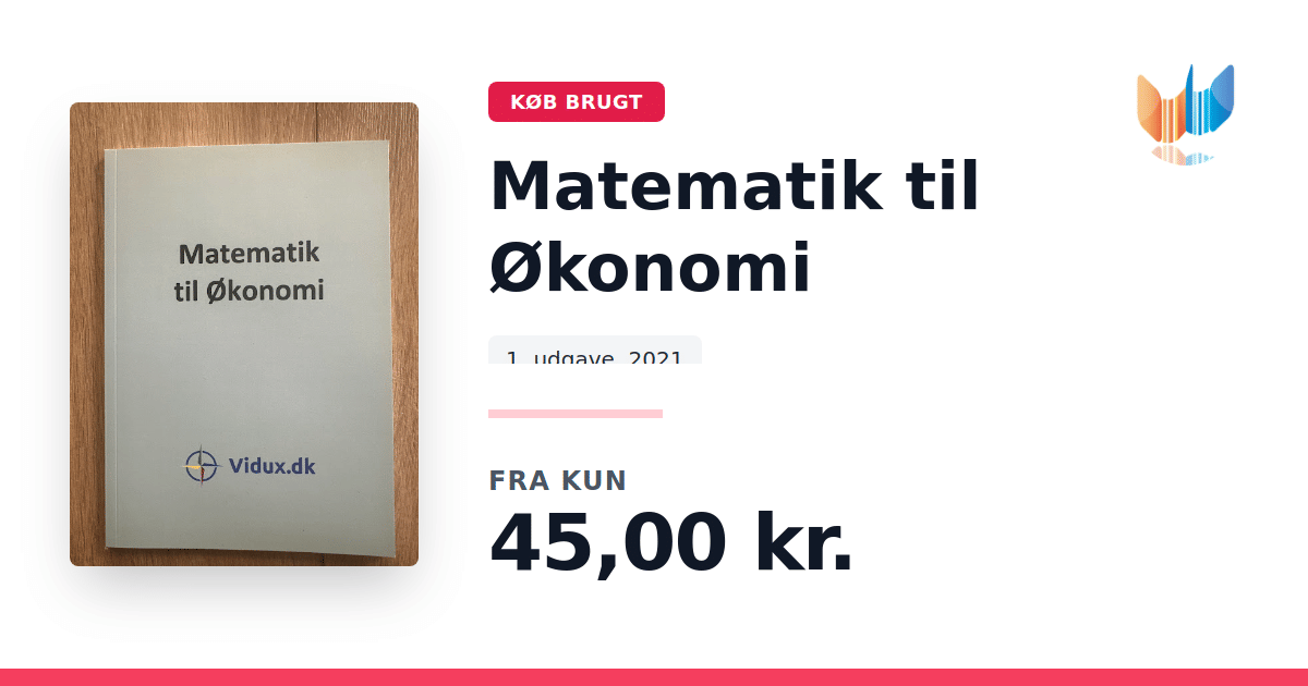 Lige nu kan du købe "Matematik til Økonomi" til kun 45,00 kr. Bogen du ser her er brugt, og i perfekt stand. Vi har i øjeblikket kun et enkelt eksemplar til salg af "Matematik til Økonomi", så slå til mens du kan!