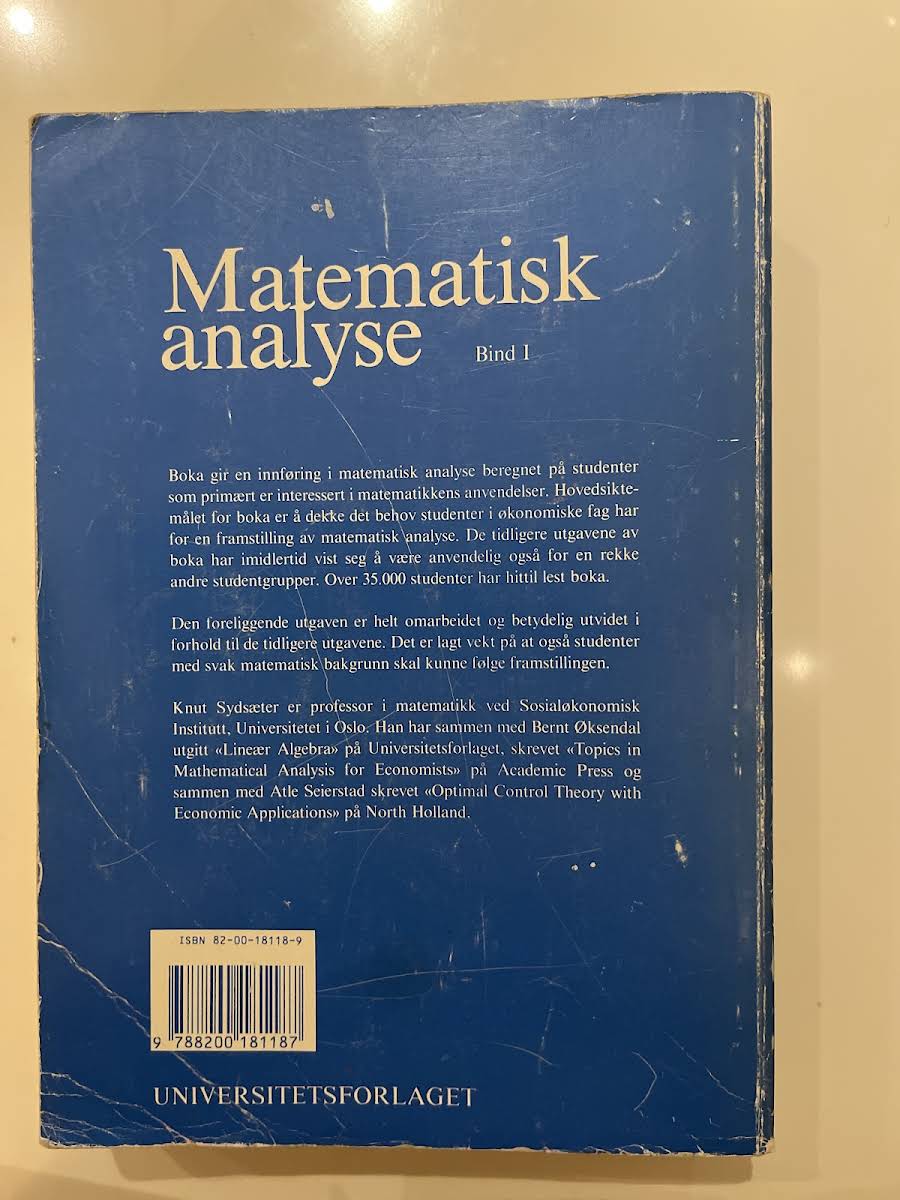 • Matematisk analyse., Knut Sydsæter, 9788200181187
