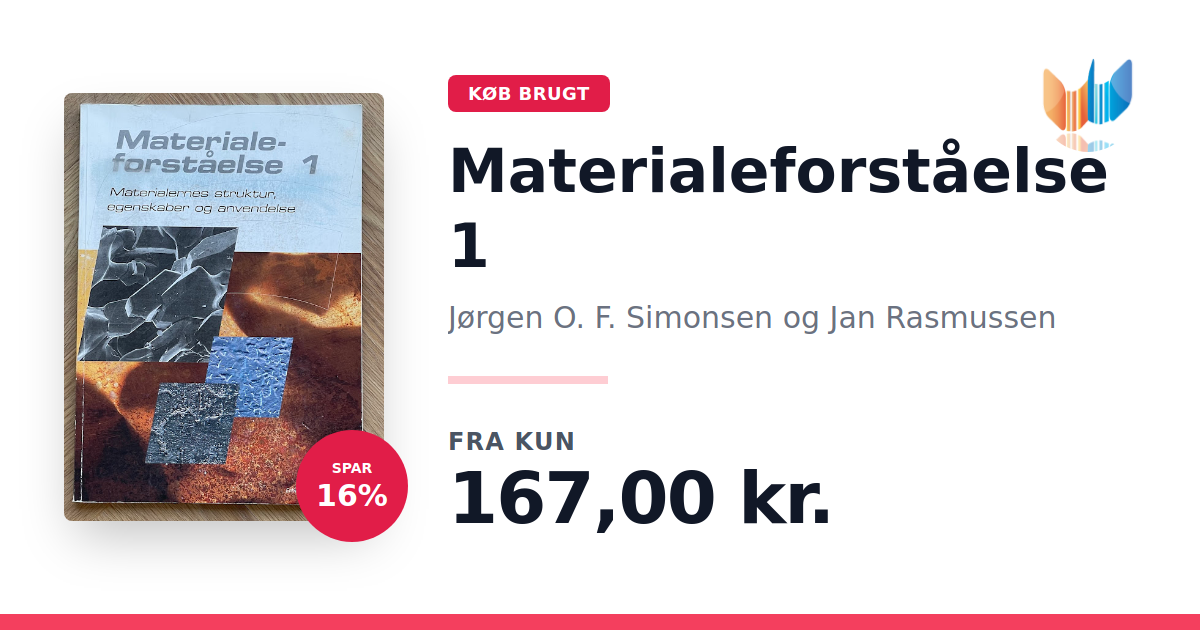 Lige nu kan du købe "Materialeforståelse 1" af Jørgen O. F. Simonsen og Jan Rasmussen til kun 167,00 kr. Du sparer hele 16% af nyprisen! Bogen du ser her er brugt, og i perfekt stand. Vi har i øjeblikket kun et enkelt eksemplar til salg af "Materialeforståelse 1", så slå til mens du kan!