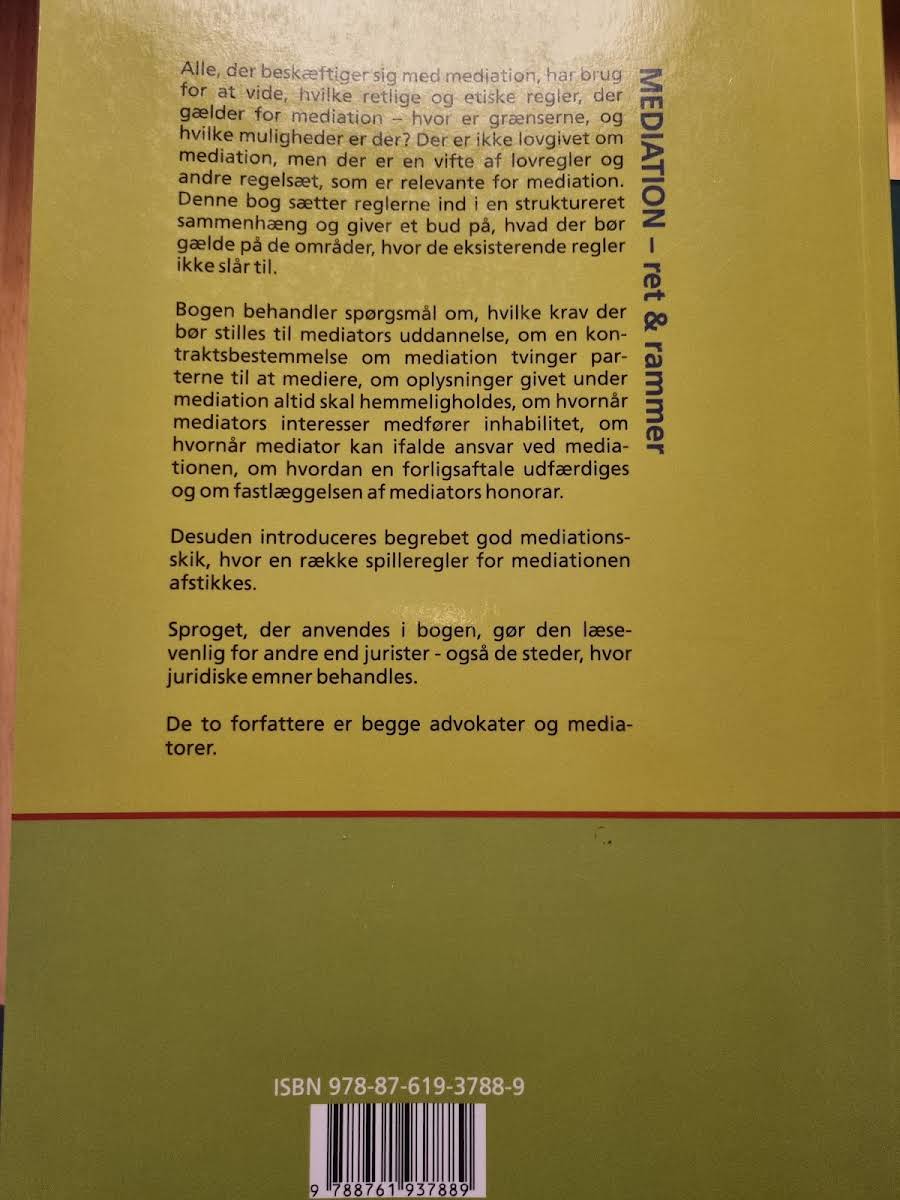 I Mediation - ret og rammer stiller Martin Lavesen og Lars Økjær Jørgensen skarpt på de etiske rammer og regelsæt, som er centrale for den voksende anvendelse af konfliktløsning gennem mediation i Danmark. Bogen redegør for eksisterende normer og foreslår, hvordan man kan udfylde de huller, hvor de nuværende regler ikke dækker tilstrækkeligt. Gennem en grundig drøftelse af emner som krav til mediatorens uddannelse, aftalens bindende karakter, fortrolighed og inhabilitet, tilbyder værket læseren et solidt fundament for forståelsen af en god mediationspraksis. Bogen indeholder desuden retningslinjer for udarbejdelsen af forligsaftalen og rådgiver om principperne for korrekt aflønning af mediatorer, hvilket gør den til et uvurderligt redskab for praktikere på området.
