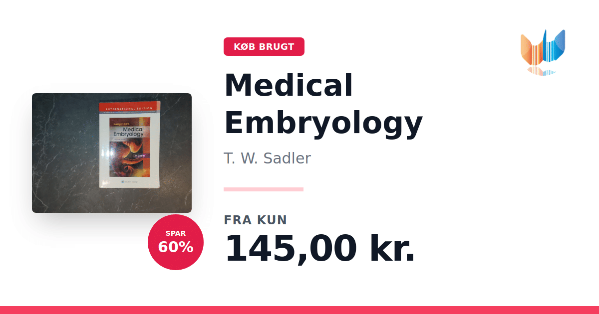 Lige nu kan du købe "Medical Embryology" af T. W. Sadler til kun 145,00 kr. Du sparer hele 60% af nyprisen! Bogen du ser her er brugt, og i god stand. Vi har i øjeblikket kun et enkelt eksemplar til salg af "Langman's Medical Embryology", så slå til mens du kan!