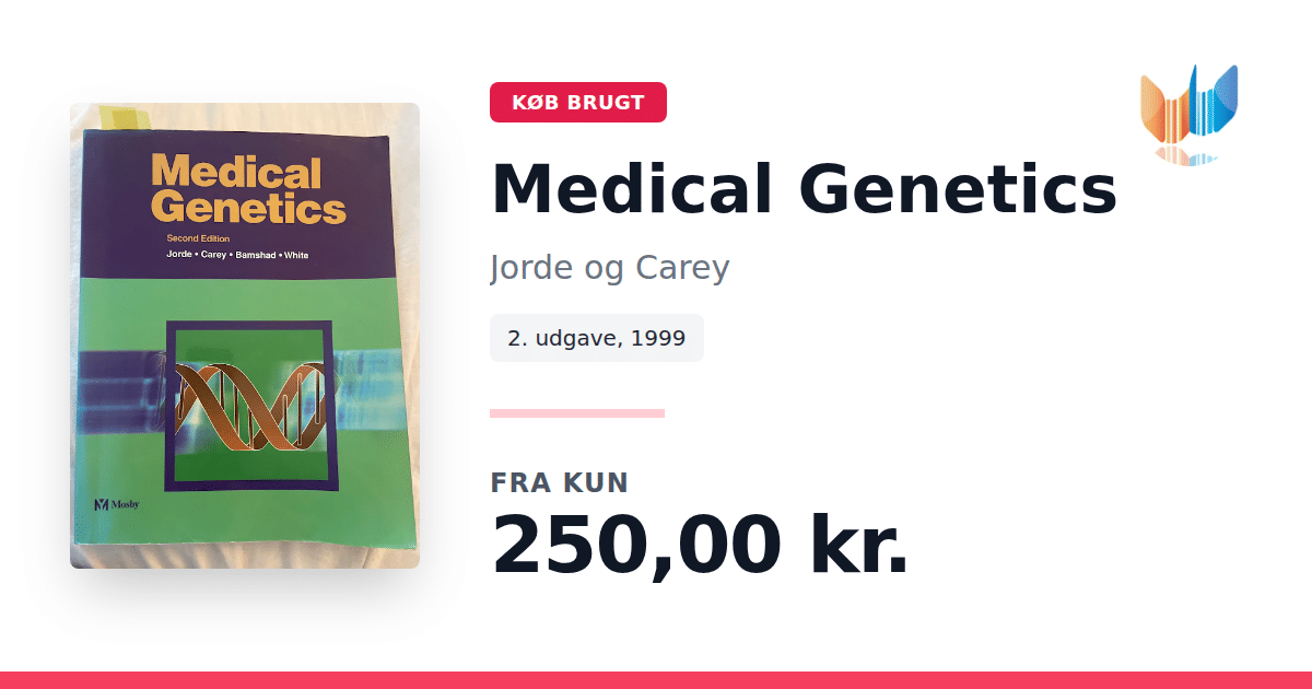 Lige nu kan du købe "Medical Genetics" af Jorde og Carey til kun 250,00 kr. Bogen du ser her er brugt, og i god stand. Vi har i øjeblikket 5 eksemplarer til salg af "Medical Genetics", så husk at se de forskellige udgaver.