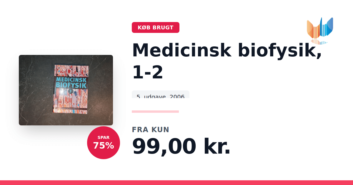 Lige nu kan du købe "Medicinsk biofysik, 1-2" til kun 99,00 kr. Du sparer hele 75% af nyprisen! Bogen du ser her er brugt, og i god stand. Vi har i øjeblikket 2 eksemplarer til salg af "Medicinsk biofysik, 1-2", så husk at se de forskellige udgaver.