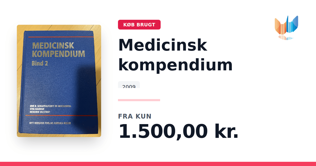 Lige nu kan du købe "Medicinsk kompendium" til kun 1.500,00 kr. Bogen du ser her er brugt, og i perfekt stand. Vi har i øjeblikket 4 eksemplarer til salg af "Medicinsk kompendium", så husk at se de forskellige udgaver.