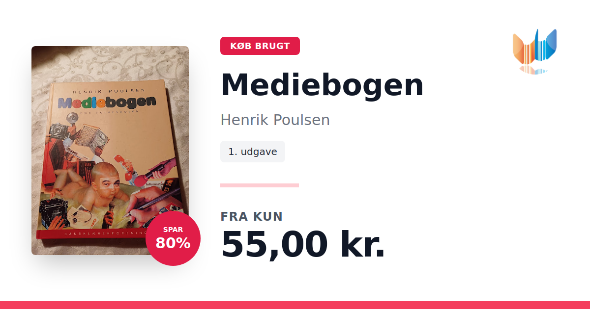 Lige nu kan du købe "Mediebogen" af Henrik Poulsen til kun 55,00 kr. Du sparer hele 80% af nyprisen! Bogen du ser her er brugt, og i god stand. Vi har i øjeblikket 2 eksemplarer til salg af "Mediebogen", så husk at se de forskellige udgaver.