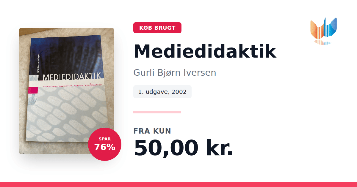 Lige nu kan du købe "Mediedidaktik" af Gurli Bjørn Iversen til kun 50,00 kr. Du sparer hele 76% af nyprisen! Bogen du ser her er brugt, og i god stand. Vi har i øjeblikket 5 eksemplarer til salg af "Mediedidaktik", så husk at se de forskellige udgaver.