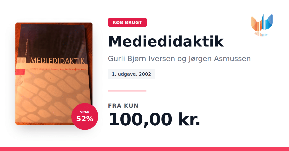 Lige nu kan du købe "Mediedidaktik" af Gurli Bjørn Iversen og Jørgen Asmussen til kun 100,00 kr. Du sparer hele 52% af nyprisen! Bogen du ser her er brugt, og i perfekt stand. Vi har i øjeblikket 4 eksemplarer til salg af "Mediedidaktik", så husk at se de forskellige udgaver.