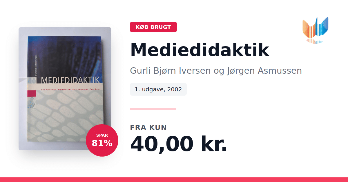 Lige nu kan du købe "Mediedidaktik" af Gurli Bjørn Iversen og Jørgen Asmussen til kun 40,00 kr. Du sparer hele 81% af nyprisen! Bogen du ser her er brugt, og i perfekt stand. Vi har i øjeblikket 4 eksemplarer til salg af "Mediedidaktik", så husk at se de forskellige udgaver.