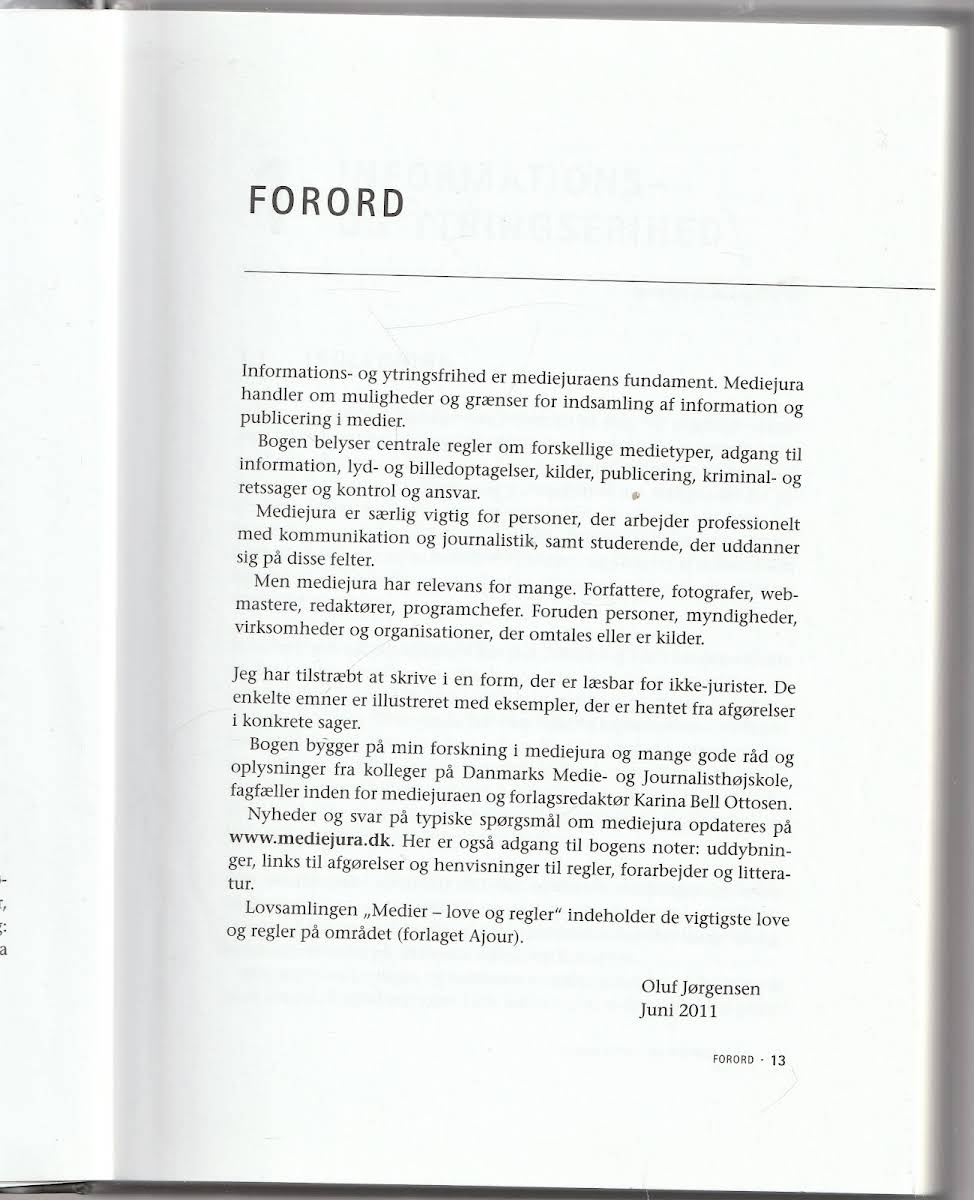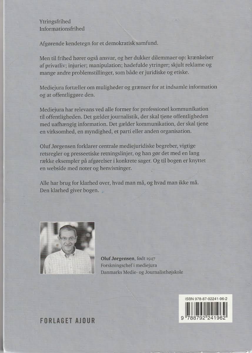 Mediejura er en grundig gennemgang af de juridiske rammer, der sætter dagsordenen for informations- og ytringsfrihed i Danmark. Bogen forklarer, hvordan regler både åbner op for og sætter grænser for indsamling, optagelse og publicering af medieindhold. Gennem en overskuelig og præcis tilgang belyses centrale bestemmelser for forskellige medietyper, herunder adgang til information, lyd- og billedoptagelser samt håndteringen af kilder og offentliggørelse. Oluf Jørgensen, anerkendt som eksperten inden for mediejura, deler sin dybdegående indsigt i et fagområde, der påvirker både kriminal- og retssager samt kontrol og ansvar. Med en lang erfaring i at behandle emnet er han den betroede stemme, der giver klarhed over, hvordan juraen understøtter den uundværlige balance mellem offentlighedens ret til information og den nødvendige lovmæssige regulering.