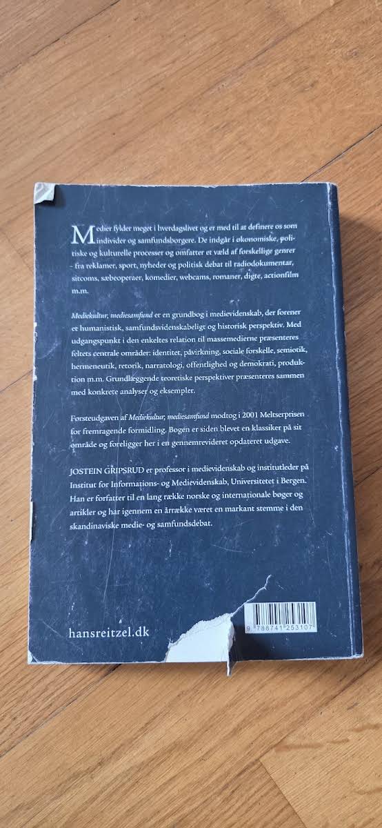 I Mediekultur, mediesamfund udforsker Jostein Gripsrud, professor i medievidenskab, hvordan medier former vores identitet og bidrager til den kulturelle, politiske og økonomiske dynamik i samfundet. Bogen samler humanistiske, samfundsvidenskabelige og historiske perspektiver og giver læseren et solidt teoretisk fundament for at forstå samspillet mellem individer og massemedier. Med udgangspunkt i analyser af identitet, påvirkning, sociale skel og de mange genrer, der fylder vores hverdag, præsenteres centrale emner såsom semiotik, hermeneutik, retorik, narratologi, offentlighed og demokrati. Gennem konkrete eksempler og teoretiske indsigter bliver det tydeligt, hvordan medievidenskaben spejler den komplekse virkelighed, som medier udgør for samtidens samfund.