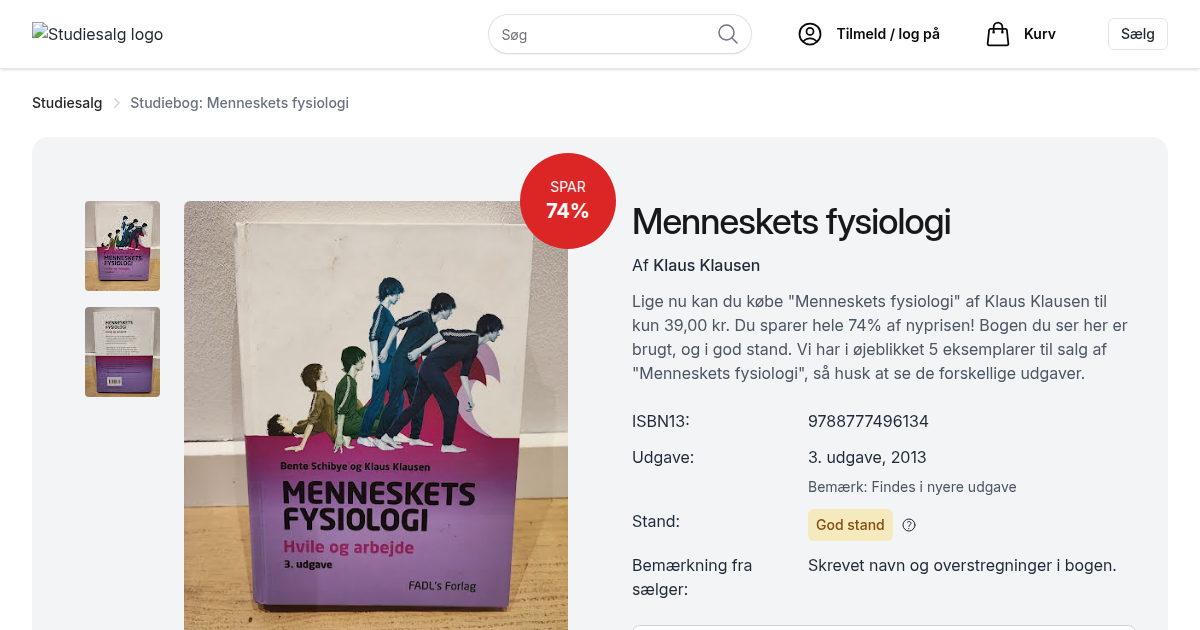 • Menneskets fysiologi, Klaus Klausen, 9788777496134