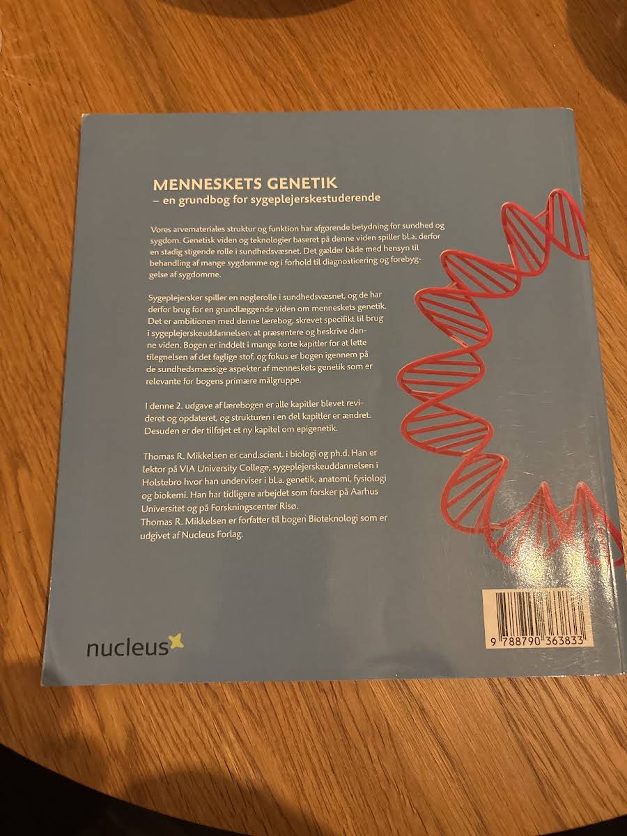Menneskets genetik er en opdateret og grundig introduktion til den menneskelige arv, særligt tilpasset sygeplejersker og studerende på sygeplejerskeuddannelsen. I denne 2. udgave har Thomas R. Mikkelsen revideret og opdateret indholdet med et let og overskueligt layout, der gør det enkelt at få overblik over de vigtigste genetiske begreber. Bogen er struktureret i mange korte og fokuserede kapitler, hvilket gør den nem at studere og forstå. Den indeholder blandt andet et nyt kapitel om epigenetik, som er med til at sætte ekstra fokus på de sundhedsmæssige aspekter af genetik. Med sin klare formidling leverer Menneskets genetik et solidt fundament for alle, der ønsker at forstå den centrale rolle, som genetiske processer spiller inden for sundhedsvidenskaben.