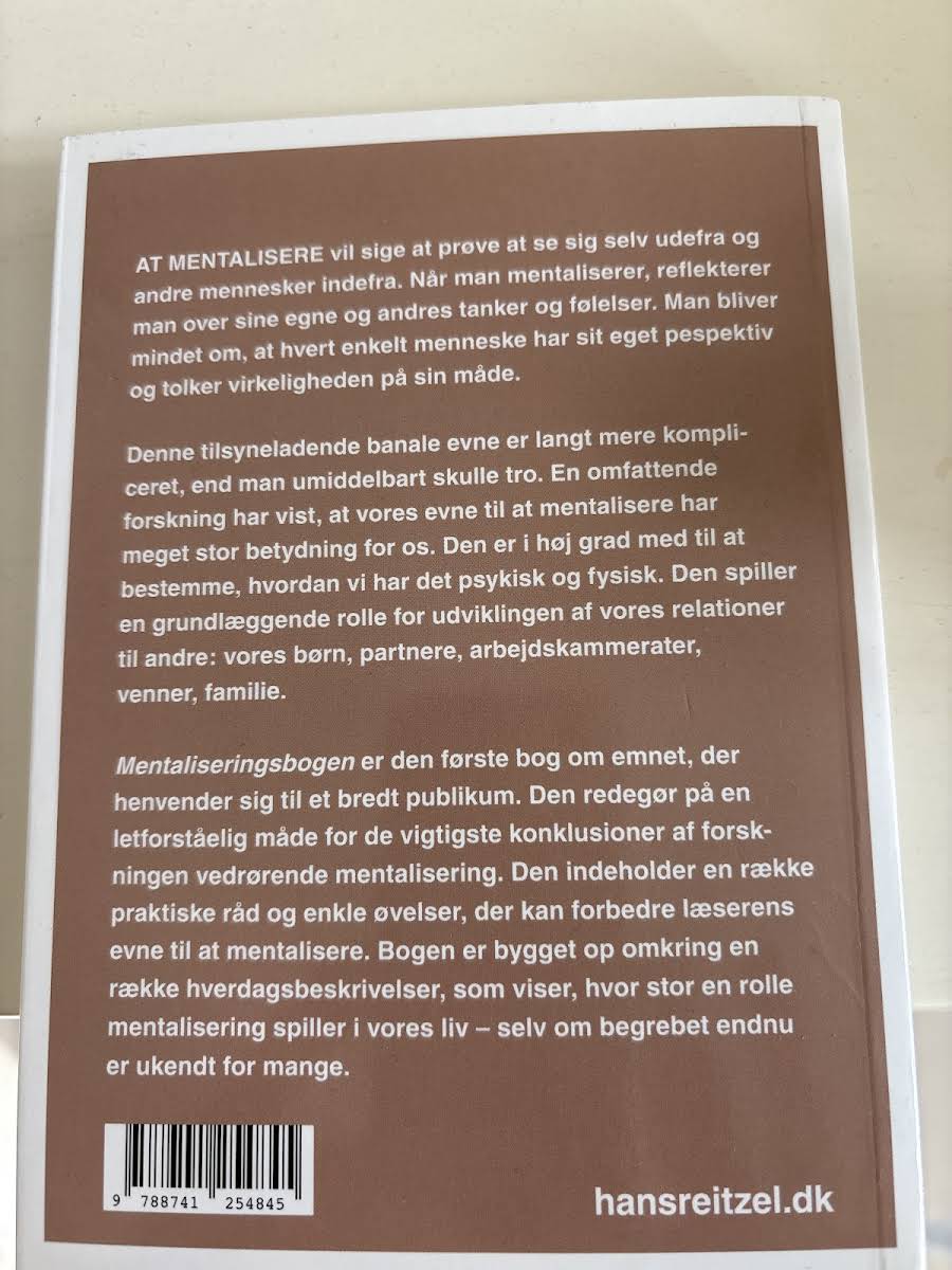At mentalisere handler om at betragte sig selv udefra og andre indefra - at reflektere over egne og andres tanker og følelser. Det minder os om, at hvert menneske har sit eget perspektiv og tolker verden ud fra sine personlige erfaringer. Selvom evnen virker simpel, viser omfattende forskning, at mentalisering har stor betydning for både vores psykiske og fysiske velbefindende. Den former vores relationer til børn, partnere, arbejdskolleger, venner og familie. Mentaliseringsbogen er den første bog på dansk, som på en tilgængelig måde præsenterer forskningens vigtigste konklusioner om mentalisering. Med letforståelige forklaringer, praktiske råd og konkrete øvelser får læseren redskaber til at styrke sin egen mentaliseringsevne. Bogen bygger på hverdagsnære eksempler, der illustrerer, hvor markant mentalisering præger vores dagligdag, selv når vi ikke er bevidste om begrebet. Per Wallroth er psykolog, autoriseret psykoterapeut og supervisor i psykodynamisk psykoterapi. Som førende repræsentant for mentalisering og mentaliseringsbaseret terapi (MBT) i Sverige deler han her sin ekspertise. Udgivet af Hans Reitzels Forlag, 2011. Hardcover, 176 sider.