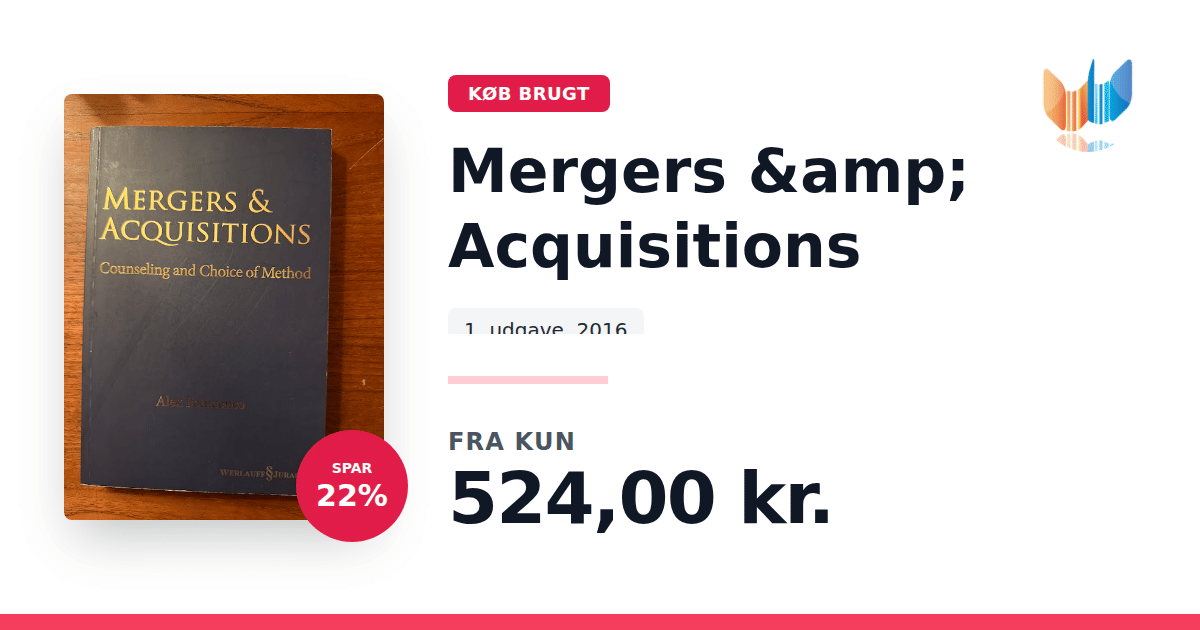 Lige nu kan du købe "Mergers & Acquisitions" til kun 524,00 kr. Du sparer hele 22% af nyprisen! Bogen du ser her er brugt, og i perfekt stand. Vi har i øjeblikket kun et enkelt eksemplar til salg af "Mergers & Acquisitions", så slå til mens du kan!