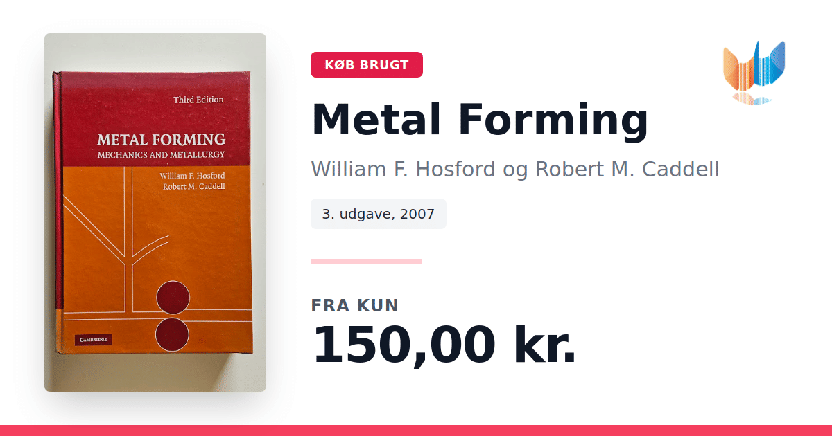 Lige nu kan du købe "Metal Forming" af William F. Hosford og Robert M. Caddell til kun 150,00 kr. Bogen du ser her er brugt, og i slidt stand. Vi har i øjeblikket kun et enkelt eksemplar til salg af "Metal Forming", så slå til mens du kan!
