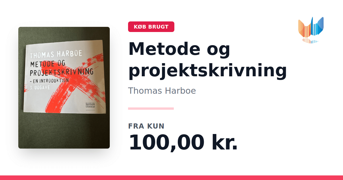 Lige nu kan du købe "Metode og projektskrivning" af Thomas Harboe til kun 100,00 kr. Bogen du ser her er brugt, og i perfekt stand. Vi har i øjeblikket kun et enkelt eksemplar til salg af "Metode og projektskrivning", så slå til mens du kan!
