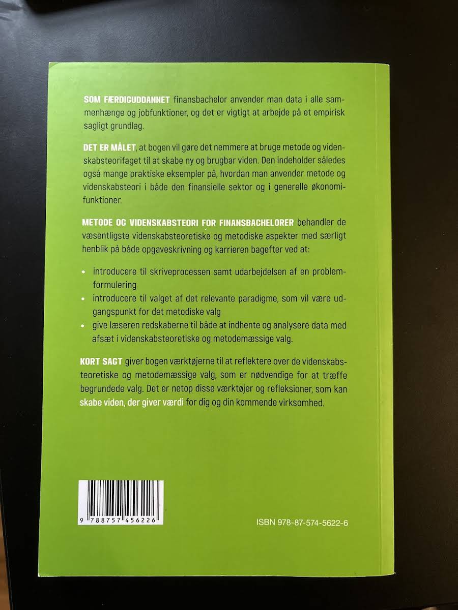 Når du træder ud som finansbachelor, er evnen til at anvende data på en saglig og empirisk funderet måde altafgørende. I Metode og videnskabsteori for finansbachelorer præsenteres praktiske redskaber og eksempler, der understøtter brugen af metode og videnskabsteori både i den finansielle sektor og i bredere økonomiske sammenhænge. Bogen introducerer skridt for skridt skriveprocessen og udformningen af en præcis problemformulering, mens den samtidig belyser, hvordan valget af et relevant paradigme danner grundlaget for det videre metodiske arbejde. Læseren får desuden værktøjer til at indsamle og analysere data ud fra nøje overvejede videnskabsteoretiske og metodiske valg – alt sammen med henblik på at træffe velinformerede beslutninger, der kan skabe ny og værdifuld viden.
