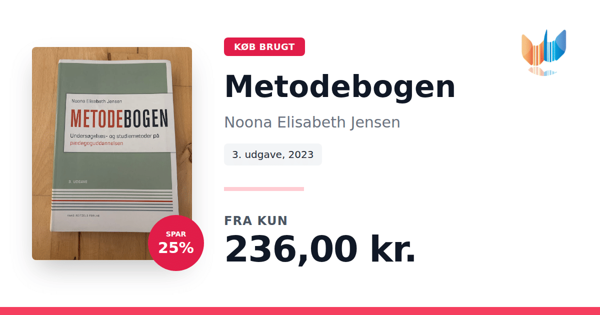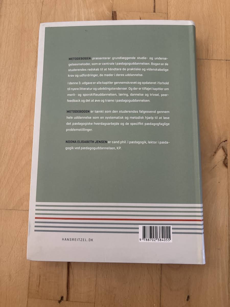 Metodebogen: Studie- og undersøgelsesmetoder på pædagoguddannelsen giver en systematisk indføring i de væsentligste metoder, du møder gennem dit studie. Denne 3. udgave fra 2023 er grundigt gennemskrevet og ajourført med nyeste litteratur og udviklingstendenser. Der er tilføjet kapitler om merit- og sporskifteuddannelser, læring, dannelse og trivsel samt om peer-feedback og øvelsespraksis. Bogen fungerer som et praktisk redskab til at håndtere både de faglige og videnskabelige krav, du møder undervejs på pædagoguddannelsen. Den følger dig fra de første studieseminarer til specialet og hjælper dig med at læse og analysere pædagogisk hverdagsarbejde og komplekse pædagogfaglige problemstillinger. Hvert kapitel afsluttes med et diskussionsafsnit, der præsenterer alternative vinkler på de gennemgåede emner. Disse refleksionsøvelser kan med fordel anvendes i studiegrupper eller som forberedelse til undervisning og eksamen, hvor de bidrager til kritisk tænkning og dybere forståelse. Som supplement rummer Metodebogen en ordliste med centrale fagbegreber sat ind i en pædagoguddannelseskontekst. Forfatteren Noona Elisabeth Jensen er cand.phil. i pædagogik og lektor ved pædagoguddannelsen på KP.