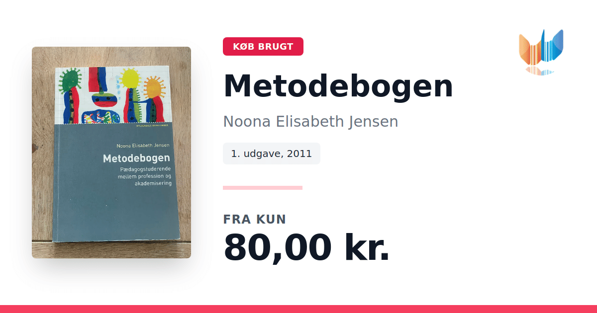 Lige nu kan du købe "Metodebogen" af Noona Elisabeth Jensen til kun 80,00 kr. Bogen du ser her er brugt, og i god stand. Vi har i øjeblikket 4 eksemplarer til salg af "Metodebogen", så husk at se de forskellige udgaver.