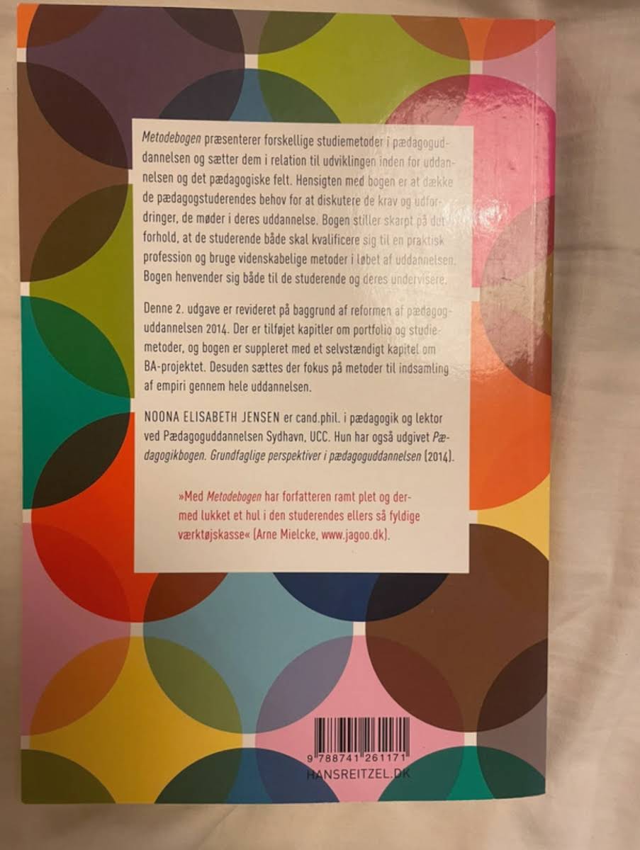 "Metodebogen" er en central lærebog for både pædagogstuderende og undervisere, der præsenterer en række studiemetoder sat i relation til pædagoguddannelsens udvikling og de krav, som dagens pædagogik stiller. Bogen belyser, hvordan man som studerende skal balancere praktisk forberedelse til professionen med anvendelsen af videnskabelige metoder. I denne opdaterede 2. udgave, som er revideret i kølvandet på reformen af pædagoguddannelsen i 2014, lægges der vægt på metoder til indsamling af empiri gennem hele uddannelsesforløbet. Yderligere indeholder bogen nye kapitler om portfolio, studiemetoder og BA-projektet, hvilket giver et nuanceret indblik i de udfordringer og muligheder, der kendetegner den pædagogiske praksis. Noona Elisabeth Jensen, cand.phil. i pædagogik og lektor, leverer med denne udgave en relevant og tidssvarende tilgang til pædagogisk metodik.