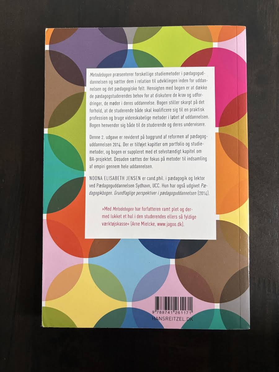 "Metodebogen" er en central lærebog for både pædagogstuderende og undervisere, der præsenterer en række studiemetoder sat i relation til pædagoguddannelsens udvikling og de krav, som dagens pædagogik stiller. Bogen belyser, hvordan man som studerende skal balancere praktisk forberedelse til professionen med anvendelsen af videnskabelige metoder. I denne opdaterede 2. udgave, som er revideret i kølvandet på reformen af pædagoguddannelsen i 2014, lægges der vægt på metoder til indsamling af empiri gennem hele uddannelsesforløbet. Yderligere indeholder bogen nye kapitler om portfolio, studiemetoder og BA-projektet, hvilket giver et nuanceret indblik i de udfordringer og muligheder, der kendetegner den pædagogiske praksis. Noona Elisabeth Jensen, cand.phil. i pædagogik og lektor, leverer med denne udgave en relevant og tidssvarende tilgang til pædagogisk metodik.