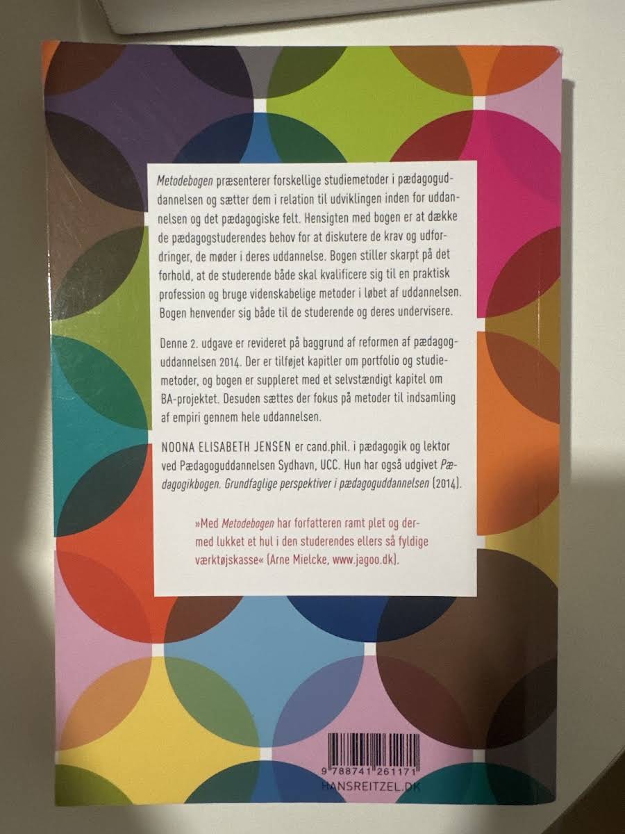 "Metodebogen" er en central lærebog for både pædagogstuderende og undervisere, der præsenterer en række studiemetoder sat i relation til pædagoguddannelsens udvikling og de krav, som dagens pædagogik stiller. Bogen belyser, hvordan man som studerende skal balancere praktisk forberedelse til professionen med anvendelsen af videnskabelige metoder. I denne opdaterede 2. udgave, som er revideret i kølvandet på reformen af pædagoguddannelsen i 2014, lægges der vægt på metoder til indsamling af empiri gennem hele uddannelsesforløbet. Yderligere indeholder bogen nye kapitler om portfolio, studiemetoder og BA-projektet, hvilket giver et nuanceret indblik i de udfordringer og muligheder, der kendetegner den pædagogiske praksis. Noona Elisabeth Jensen, cand.phil. i pædagogik og lektor, leverer med denne udgave en relevant og tidssvarende tilgang til pædagogisk metodik.