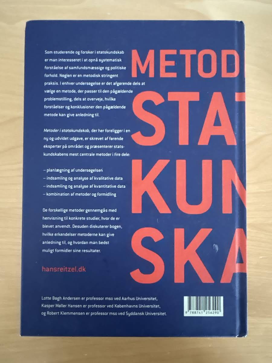"Metoder i statskundskab" er en grundigt opdateret og udvidet introduktion til de centrale metoder, der anvendes inden for statskundskab. Bogen henvender sig til studerende og forskere, der søger at opnå en dybdegående og systematisk forståelse af, hvordan man planlægger og gennemfører en vellykket undersøgelse af samfunds- og politiske forhold. I værket præsenteres de mest udbredte metoder fordelt på fire centrale områder: planlægning af undersøgelsen, indsamling og analyse af kvalitative data, indsamling og analyse af kvantitative data samt vejen fra analyse til et færdigt produkt. Hvert afsnit belyser metodernes styrker og begrænsninger med henvisninger til konkrete studier, der illustrerer de teoretiske og praktiske overvejelser bag dem. Med bidrag fra førende eksperter på området, demonstrerer bogen, hvordan man bedst vælger den rette metode til en given problemstilling, samt hvordan de opnåede erkendelser kan omsættes til formidling af valide og velunderbyggede resultater. Med sine 512 sider tilbyder "Metoder i statskundskab" et uvurderligt redskab til alle, der ønsker at mestre den metodiske tilgang inden for statskundskaben.
