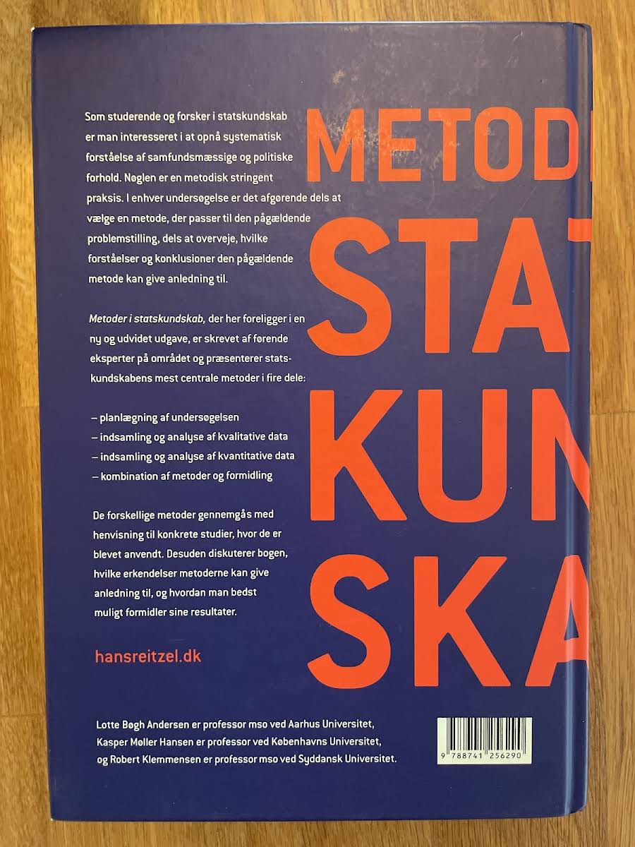 "Metoder i statskundskab" er en grundigt opdateret og udvidet introduktion til de centrale metoder, der anvendes inden for statskundskab. Bogen henvender sig til studerende og forskere, der søger at opnå en dybdegående og systematisk forståelse af, hvordan man planlægger og gennemfører en vellykket undersøgelse af samfunds- og politiske forhold. I værket præsenteres de mest udbredte metoder fordelt på fire centrale områder: planlægning af undersøgelsen, indsamling og analyse af kvalitative data, indsamling og analyse af kvantitative data samt vejen fra analyse til et færdigt produkt. Hvert afsnit belyser metodernes styrker og begrænsninger med henvisninger til konkrete studier, der illustrerer de teoretiske og praktiske overvejelser bag dem. Med bidrag fra førende eksperter på området, demonstrerer bogen, hvordan man bedst vælger den rette metode til en given problemstilling, samt hvordan de opnåede erkendelser kan omsættes til formidling af valide og velunderbyggede resultater. Med sine 512 sider tilbyder "Metoder i statskundskab" et uvurderligt redskab til alle, der ønsker at mestre den metodiske tilgang inden for statskundskaben.
