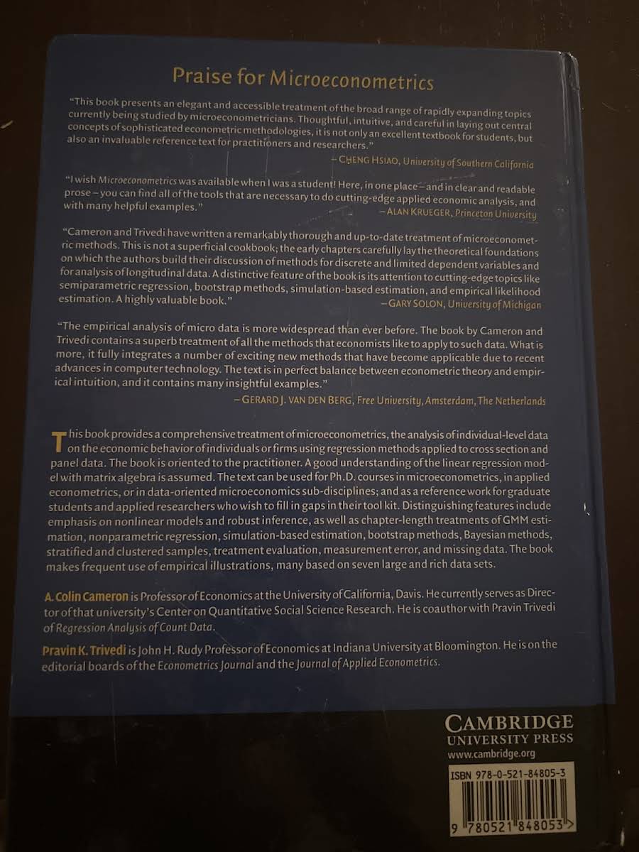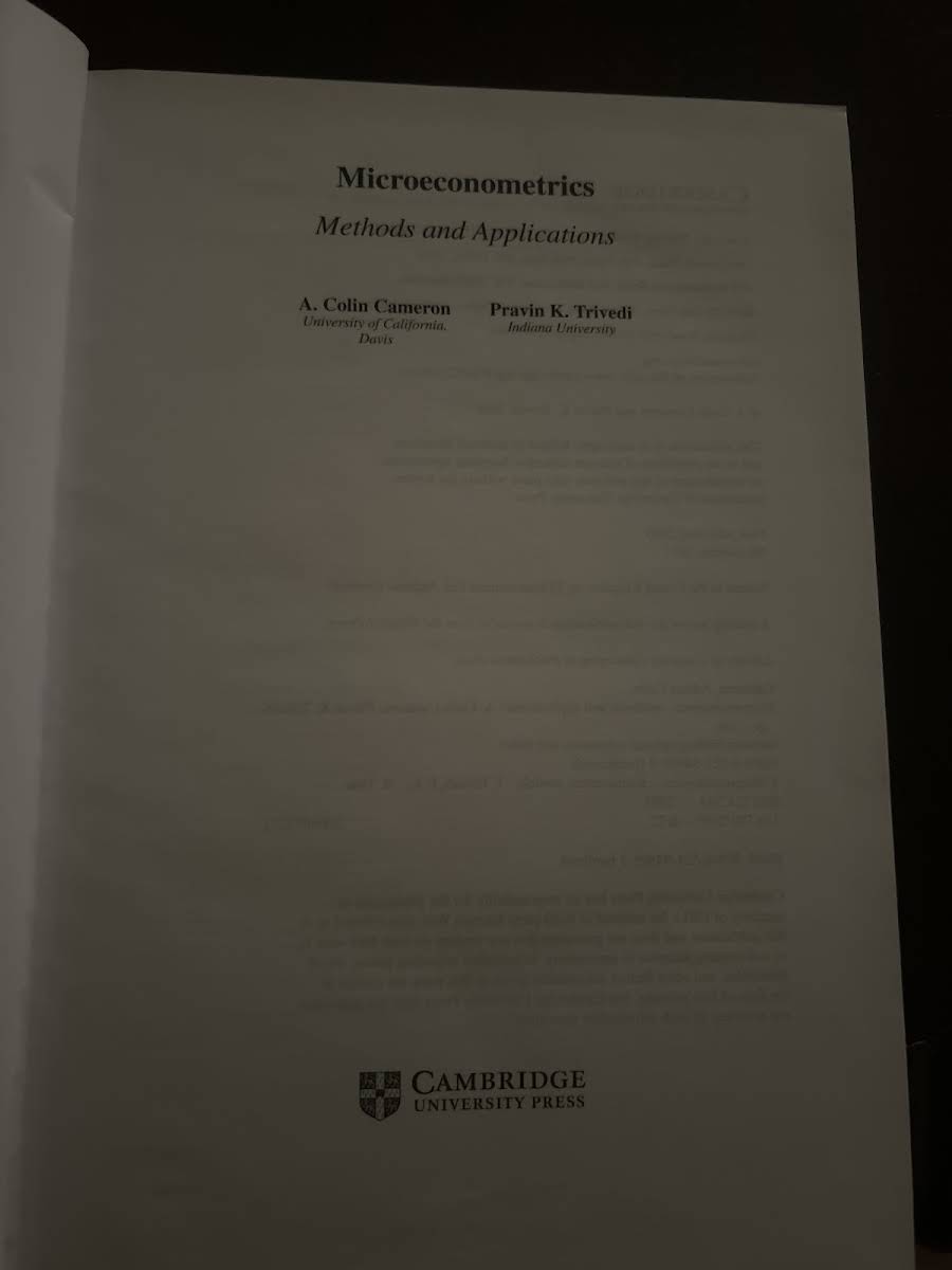 • Microeconometrics, A. Colin Cameron, Pravin K. Trivedi, 9780521848053