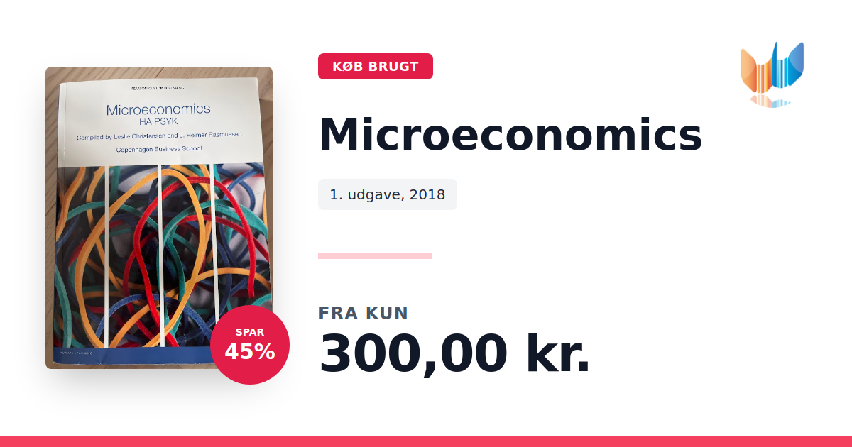 Lige nu kan du købe "Microeconomics" til kun 300,00 kr. Du sparer hele 45% af nyprisen! Bogen du ser her er brugt, og i god stand. Vi har i øjeblikket kun et enkelt eksemplar til salg af "Microeconomics", så slå til mens du kan!