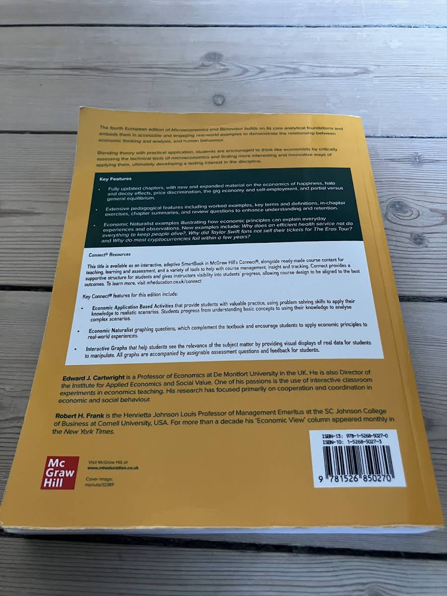 • Microeconomics and Behaviour, 4e, Robert Frank, Edward Cartwright, 9781526850270