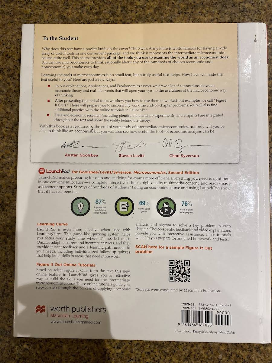 Microeconomics af Austan Goolsbee, Steven Levitt og Chad Syverson forener teori og praksis med et stærkt empirisk fokus og levende eksempler, der lader studerende teste økonomiske modeller og anvende dem i virkelige beslutningssituationer. Bogen stiller to afgørende spørgsmål: Handler folk og virksomheder virkelig, som teorien forudsiger? Og hvordan kan mikroøkonomi bruges i praksis? Hvert kapitel er nøje struktureret med illustrative cases og dynamiske figurer, der viser, hvordan teorien omsættes til analyser af markedsmæssige udfordringer. Den empiriske tilgang giver mulighed for at sammenligne antagelser med konkrete data, så læseren får et dybere indblik i mikroøkonomiens mekanismer. Som supplement til lærebogen indeholder LaunchPad en interaktiv e-bog med videoer, applets og manipulerbare visualiseringer samt LearningCurve-quizzer, der via adaptive algoritmer tilpasser sig den enkeltes niveau og tilbyder målrettet feedback. Med præbyggede undervisningsmoduler og overskuelige analyseredskaber får både undervisere og studerende et effektivt værktøj til at bygge, gennemføre og følge mikroøkonomikurser.