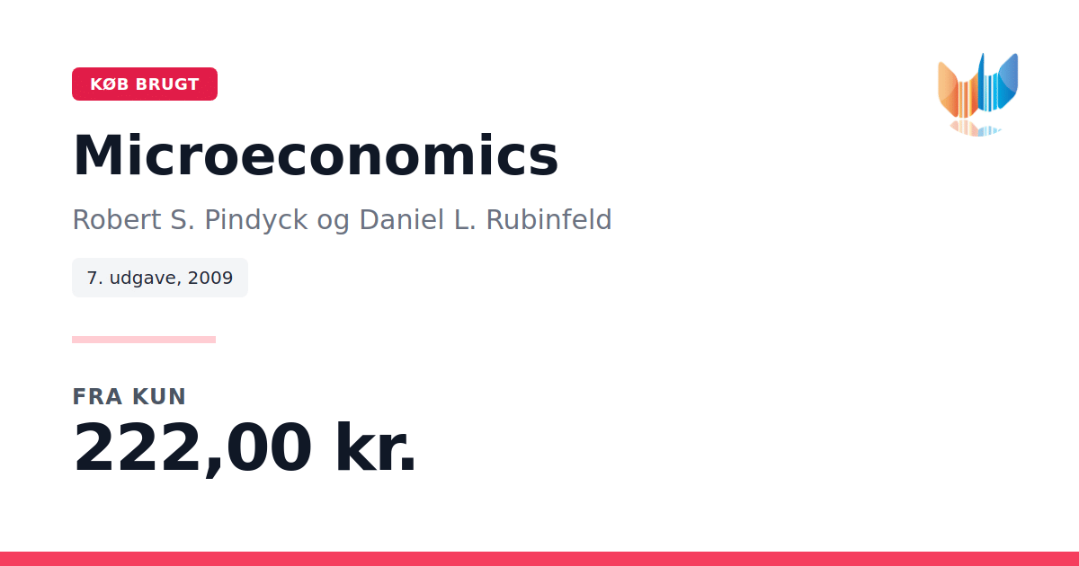 Lige nu kan du købe "Microeconomics" af Robert S. Pindyck og Daniel L. Rubinfeld til kun 222,00 kr. Bogen du ser her er brugt, og i perfekt stand. Vi har i øjeblikket 3 eksemplarer til salg af "Microeconomics", så husk at se de forskellige udgaver.